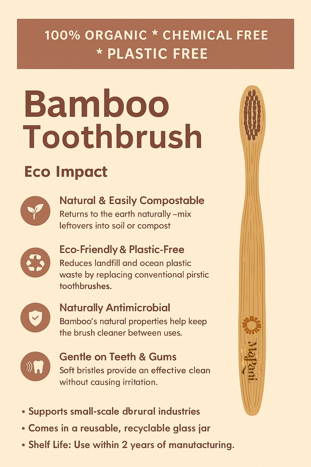 Make your daily oral care routine sustainable with our Bamboo Toothbrush—a zero-waste alternative to plastic brushes. Crafted from sustainably sourced bamboo, it offers a clean, stylish, and planet-friendly way to maintain healthy teeth and gums.