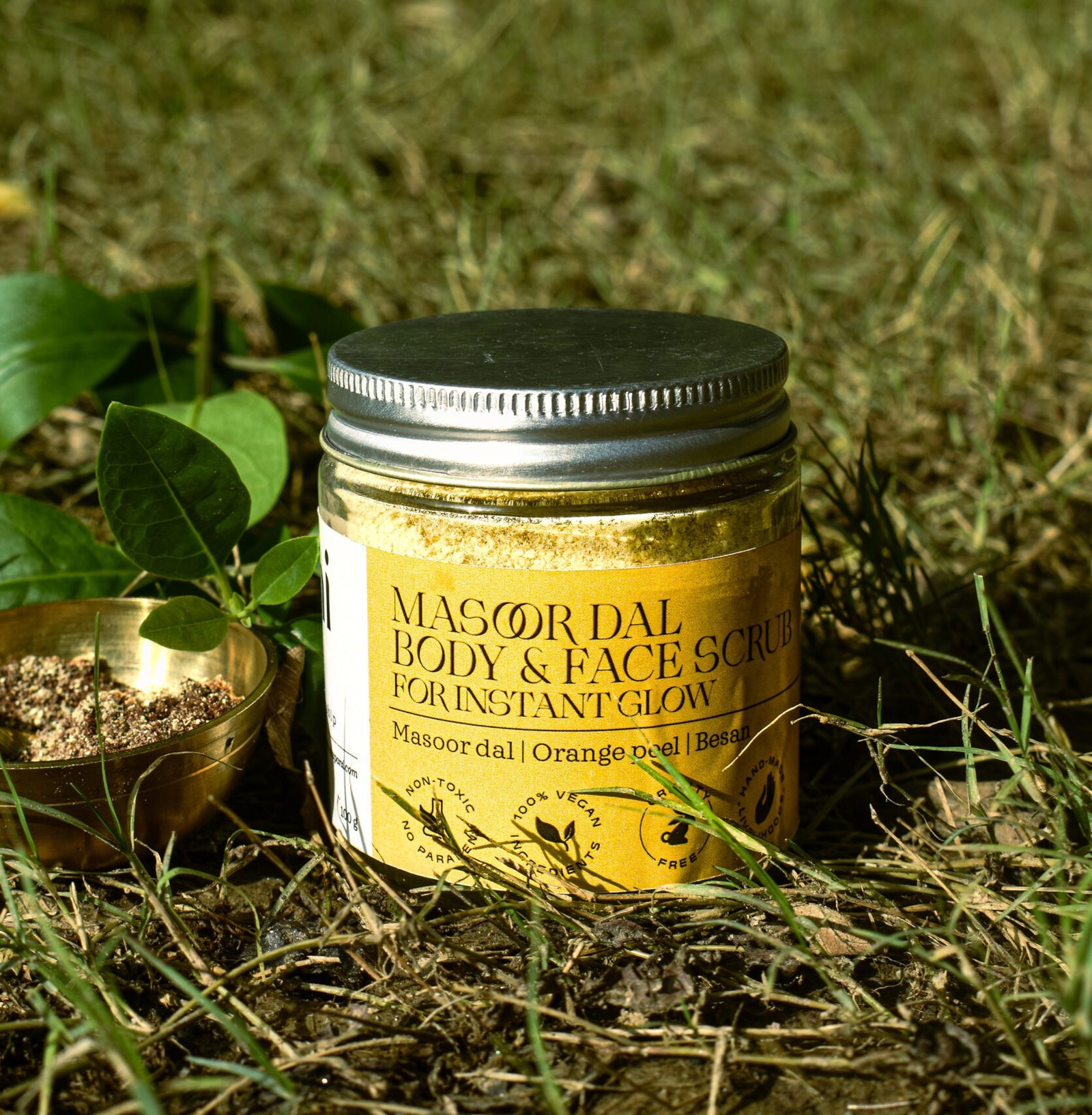 Hand-made and sun-dried by local women of Abidpur Village (Uttar Pradesh), Masoor Dal Body & Face Scrub stimulates underlying tissue of the skin.Â